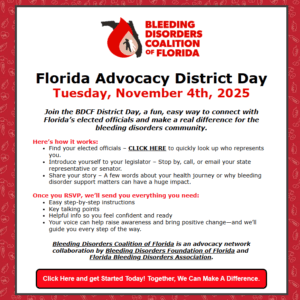Join the BDCF District Day, a fun, easy way to connect with Florida’s elected officials and make a real difference for the bleeding disorders community.