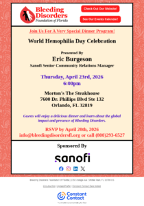 Guests will enjoy a delicious dinner and learn about the global impact and presence of bleeding disorders.